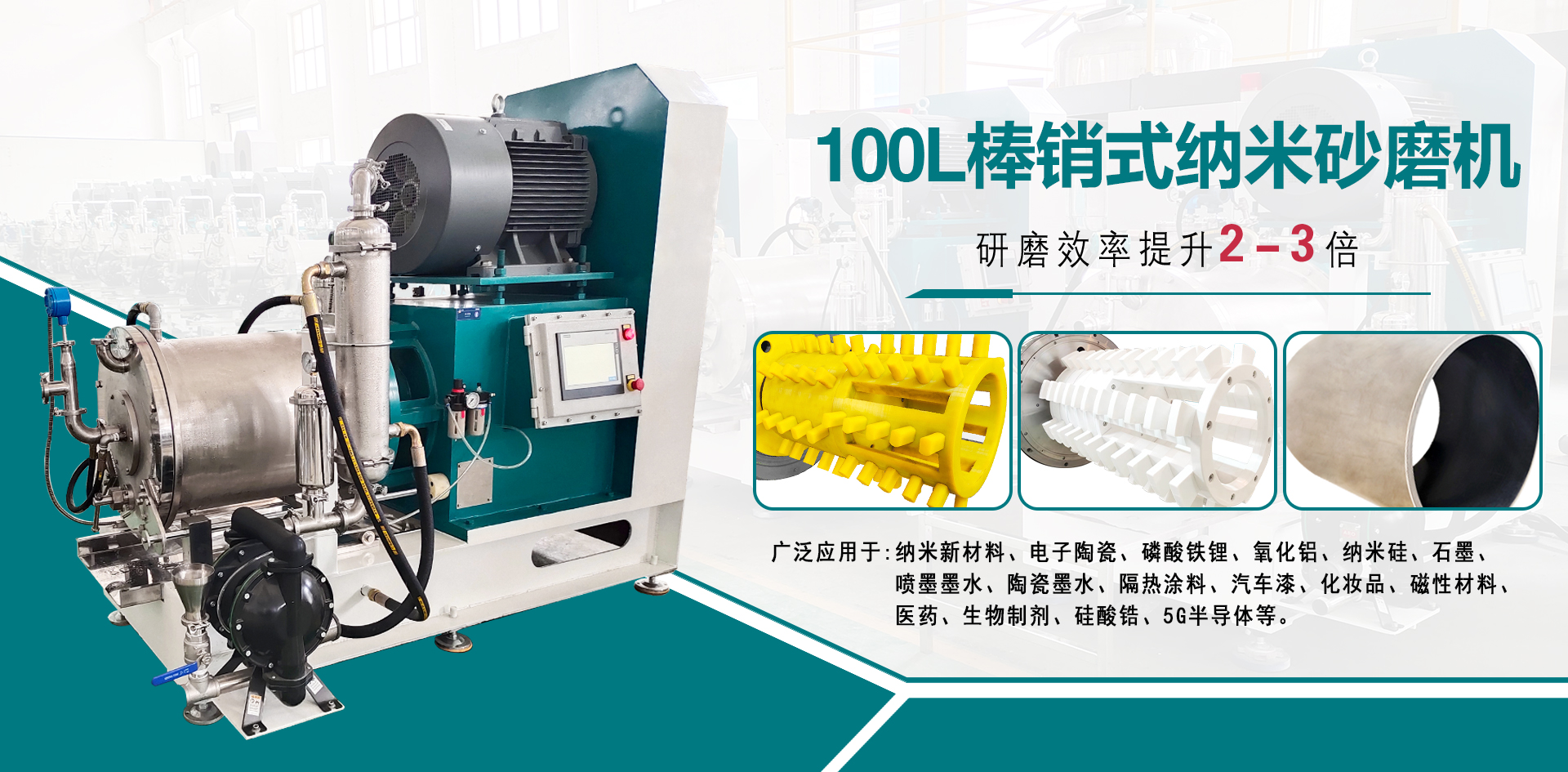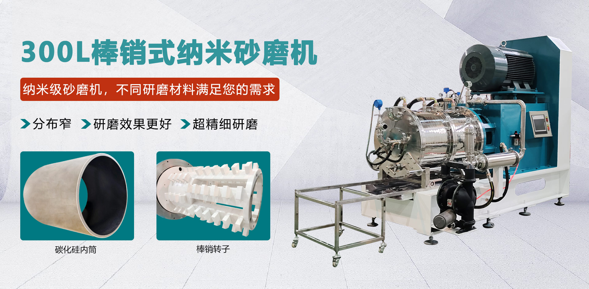 工業(yè)級棒銷動態(tài)砂磨機廣泛應用于微米級亞微米級、納米級的中高粘度物料的研磨,動靜環(huán)間隙出料,棒銷轉子結構滿足不同尺寸、不同研磨細度以及不同研磨工藝的生產需求 臥式砂磨機,適用于對研磨精度要求高的化工物料,連續(xù)封閉式高效率濕式研磨分散。 輸送泵有氣動隔膜泵和圓弧泵、刮板泵研磨介質為氧化錯珠,根據(jù)物料及細度要求選擇介質大小